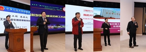 2月17日下午,新工科建设与发展高峰论坛开幕。教育部高等教育司二级巡视员、理工科教育处处长吴爱华,中国科学技术大学校长、中国科学院院士包信和,香港科技大学教授、松山湖机器人产业基地发起人李泽湘作论坛特邀报告。