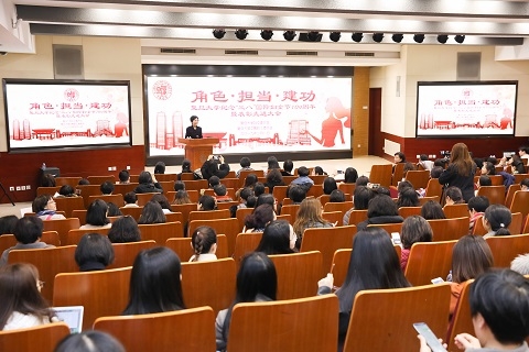 全国“三八红旗手”获得者、外国语言文学学院副院长卢丽安,上海市“三八红旗手”获得者、生物医学研究院叶丹,上海市教育系统“三八红旗集体”代表、生命科学学院吴燕华,作为获奖代表围绕“角色、担当、建功”主题做了主旨发言,她们从工作、生活、事业、家庭等不同侧面与大家分享了个人、集体的成长历程和人生感悟。她们身兼老师、妈妈、女儿等多种角色,在不同角色的成功转换间,在处理家庭、事业的关系中,在人生途径的规划上,克服重重阻力和困难,不畏艰辛,甘于担当,积极探索,勇于创新,在自己工作的领域建功立业并做出了杰出贡献,为实现科学梦、复旦梦而不断拼搏。