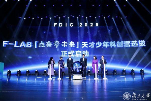 许征,复旦大学校董马秀慧,复旦大学保险应用创新研究院执行理事长孔庆伟,以及学生代表共同启动本年度F-LAB“天才少年科创营”选拔仪式