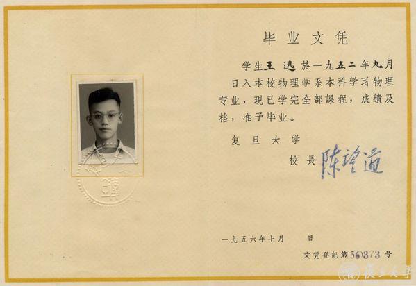 1956年本科毕业后,王迅跟随谢希德继续深造,成为谢希德的第一个研究生。王迅的学生、物理学系教授金晓峰曾撰文回忆,“那时校内广为流传有谢希德的‘四大金刚’,为首的是王老师,老师的业务水平在系里是公认的。”