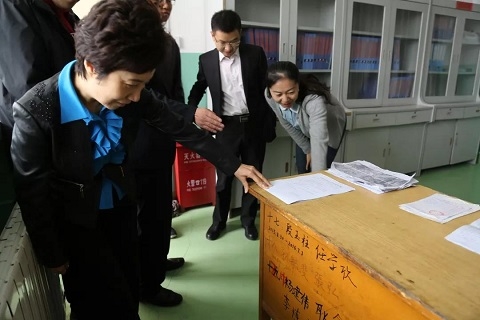 焦扬一行来到王民中学那张记录着19届研支团成员签名的书桌前