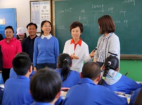 焦扬一行来到研支团队员张煜昱的英语课堂