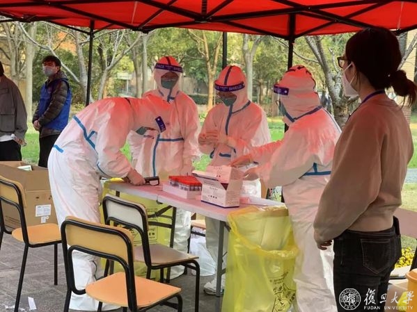 3月12日下午13时36分,复旦大学4校区及附属中小学与幼儿园按照应测尽测原则,总计4.9万多人在学校完成常态化防护性核酸检测。