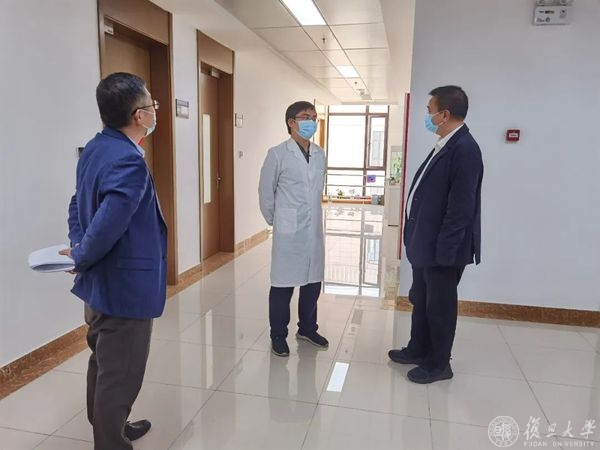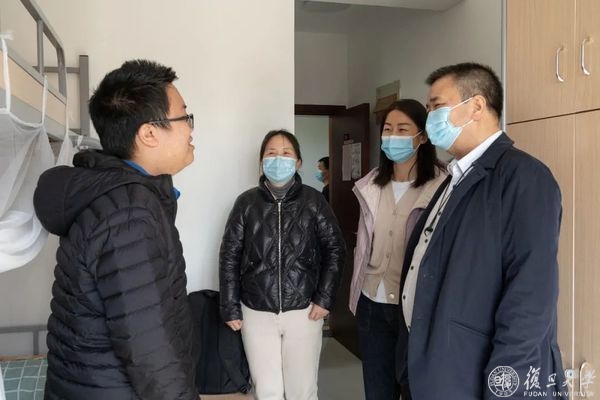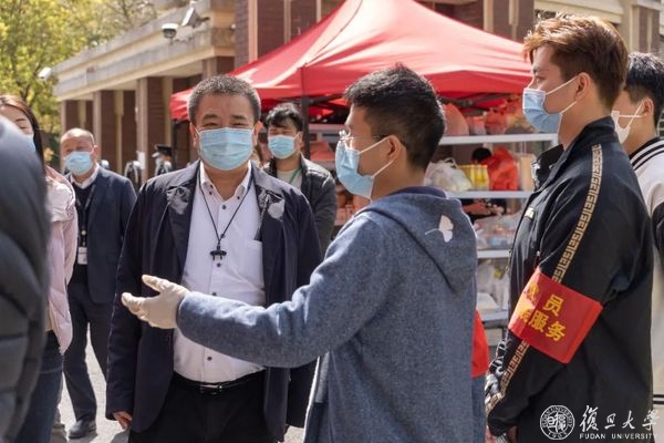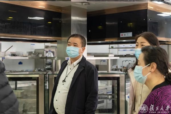 3月23日、24日,复旦大学校长金力走访江湾校区的二级院系、实体运行科研机构、学生生活园区、食堂等,现场督查疫情防控下校园运行和实验室安全管理工作,指导核酸检测工作,了解关心学生学习生活。