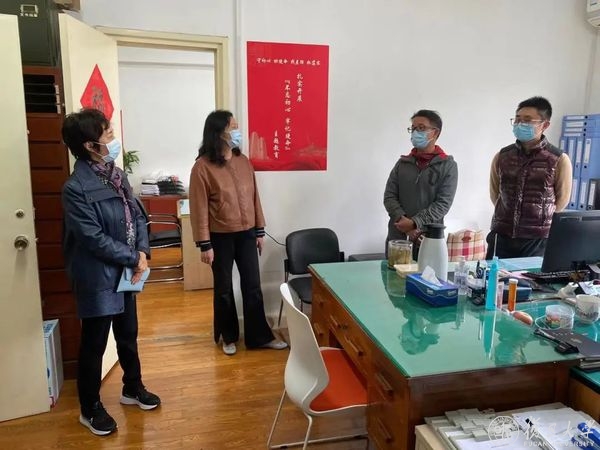 座谈会前,焦扬一行走访了北区学生寝室、研究生党员志愿服务站,慰问在校学生与开展志愿服务的学生党员。