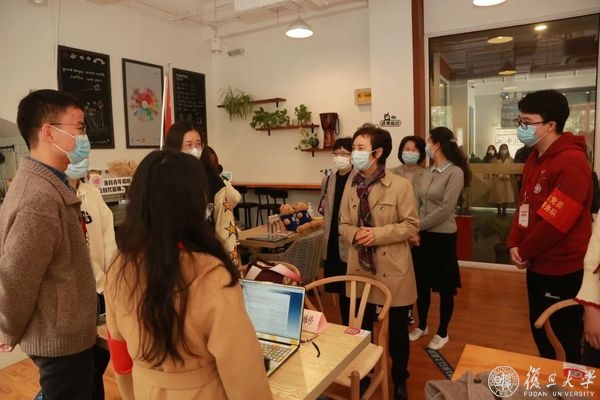 焦扬询问了党员志愿者服务队的工作流程和工作时间。她表示,党员志愿服务队员们牺牲自由时间,为师生服务,有情怀、有境界,展现了复旦学生德才兼备的风貌。大家乐于助人、乐于奉献,让在校师生感受到“大家庭”的温暖,用实际行动弘扬了爱国、爱校之情。