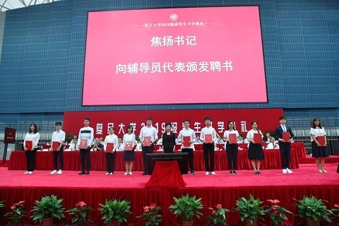 今年,复旦大学党委为2019级研究生班级聘请了111位辅导员,其中既有专业教师,也有人才工程预备队员(二期)。焦扬为辅导员代表颁发了聘书,勉励辅导员们成为学生成长成才的知心人和领路人。校党委副书记尹冬梅宣读了2019级研究生辅导员名单。
