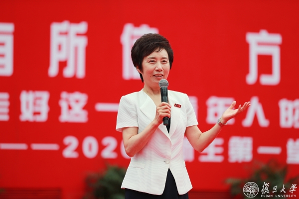 “学校要搭建舞台,造就学生、为国育才;学生要用好舞台,成就自己、回报国家。”焦扬分享了自己的思考,她叮嘱同学们,步入复旦,是人生的高光时刻,但不能让进入复旦成为自己的人生巅峰、满足于考入复旦这个“小目标”。“希望同学们在复旦提供的沃土上学会选择、抓紧当下,珍惜时光、努力成长,为国家的新长征蓄能,也为自己的人生长征奠基。”