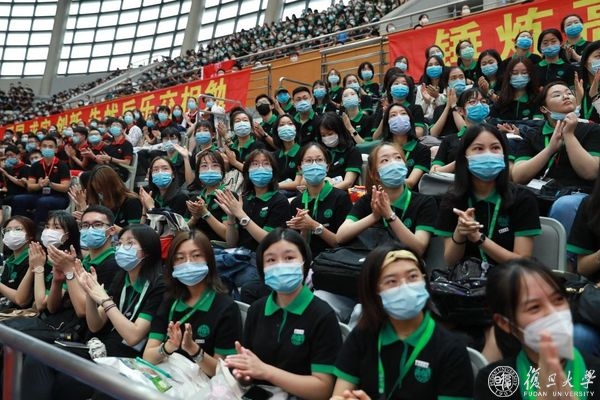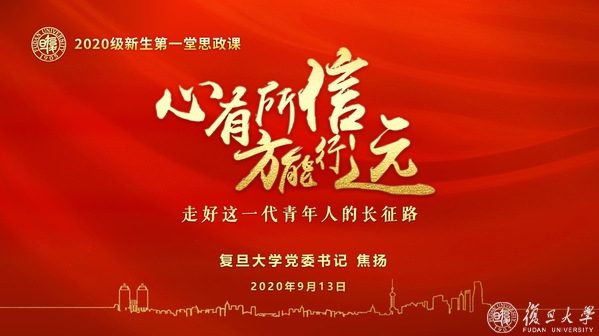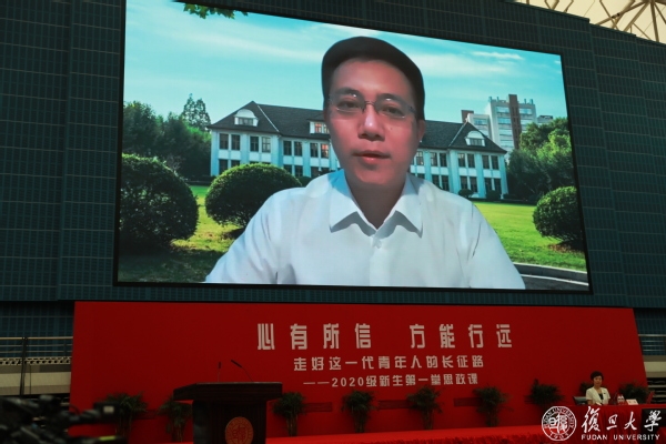 不仅是战火纷飞的年代、一穷二白的时期,进入新时代,复旦人初心不改。焦扬对同学们说,面对突如其来的新冠肺炎疫情,复旦人闻令而动、全力以赴,交出无愧于国家、人民和时代的合格答卷。511名复旦白衣战士的逆行出征、钟鸣医生的最美背影、华山“第四纵队”的“不负盛名”、刘凯医生“人间值得”的瞬间、儿科医院隔离病房的“临时妈妈”、张文宏教授“党员先上”的响亮宣示、56名医护人员的“火线入党”……这些就发生在今年的故事,不仅为这堂思政课注入了最为生动的素材,更让新生们看到,只要国家有需求,就有复旦人的身影。“正是在服务国家、奉献人民、团结奋斗中,复旦才实现了自身的快速发展、不断腾飞。”焦扬说。