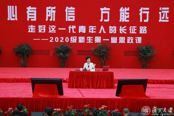 当空荡许久的正大体育馆再次迎来青春面庞,当沉寂许久的上课铃声再次响起,师生们谈论着新学期的新气象,新生们怀揣着新征程的新期待。复旦大学党委书记焦扬又一次走上讲台,为3600余名2020级新生上第一堂思政课。