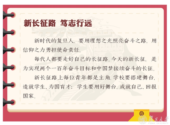 站在两个百年奋斗目标的交汇点上,在未来将加入主力军甚至成为领军者的当代复旦人,如何走好这一代青年人的长征路?