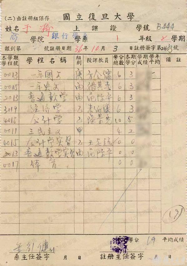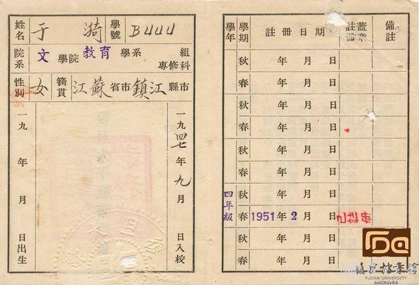 于漪的学生证