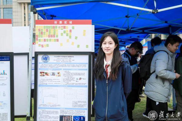 在新闻学院的《“适老”与“破圈”:老年数字教育短视频的账号孵化》课题海报前,则展现了另一种“人机协作”。
