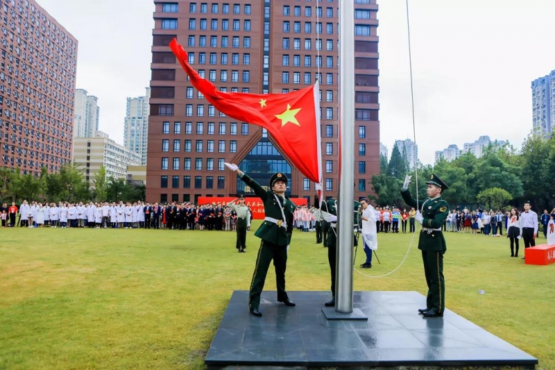 10月1日,复旦大学庆祝中华人民共和国成立70周年升旗仪式在各校区举行。上午8:30,邯郸校区国旗草坪前,校党委书记焦扬、校长许宁生等学校党政领导,上海医学院党政领导,各院系、部处负责人以及医护人员代表、校友代表、职工代表和学生代表共计400余人风雨无阻,共赴升旗仪式,同庆新中国成立70周年。